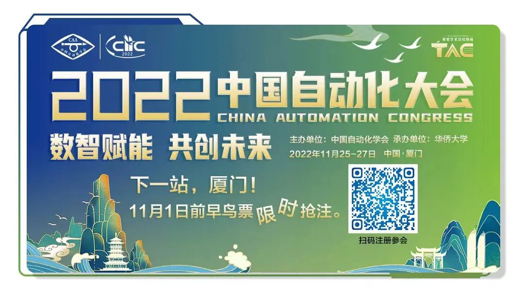 2022中国自动化大会将于2022年11月25-27日在厦门举行,大会将为全球自动化、信息与智能科学领域的专家学者和产业界的同仁提供展示创新成果、展望未来发展的高端学术平台,加强不同学科领域的交叉融合,引领自动化、信息与智能科学与技术的发展。