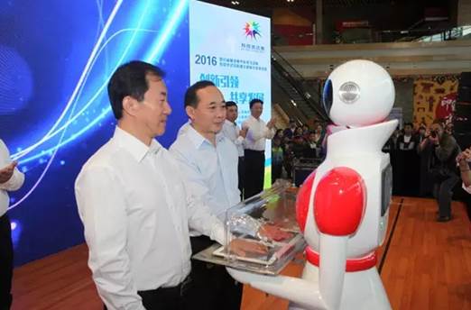 图2:省政协副主席陈放、省政府副秘书长罗治平共同启动 “2016年四川省暨成都市科技活动周”