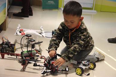 图5、6、7 机器人展示吸引了大量市民、中小学生及科技工作者参观体验