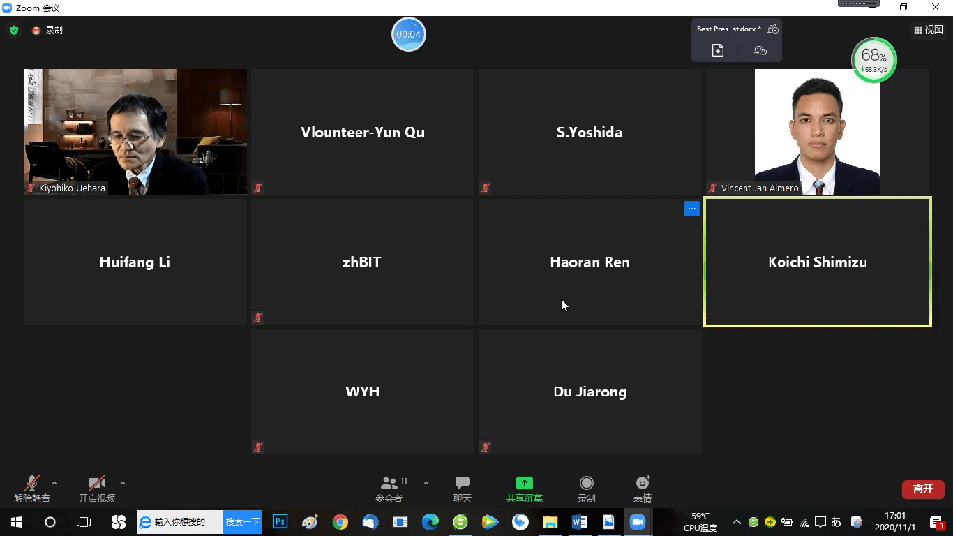 会议闭幕式暨颁奖典礼于11月2日下午举行,由北京理工大学自动化学院辛斌教授主持,会议颁发了“最佳报告奖”“最佳论文奖”、“青年学者奖”、“最佳组织者奖”等,由ISCIIA创始人Kaoru Hirota教授和ISCIIA 2020程序委员会主席东京工科大学Jinhua She教授共同宣读获奖名单。