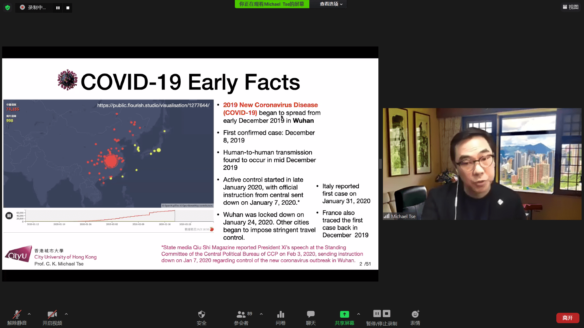 Michael Tse教授做“Modelling and Prediction of COVID-19 Spreading”报告