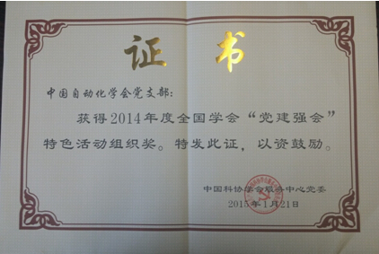 会议总结了2014年中国科协学会党建工作,交流了活动开展中的好经验、好做法,并宣读了《关于表彰2014年度全国学会“党建强会计划”特色活动组织奖获奖学会党组织的决定》。新利娱乐网站党支部等24个兄弟学会党组织因2014年度“党建强会计划”特色活动开展中取得的成绩荣获2014年度全国学会“党建强会”特色活动组织奖。