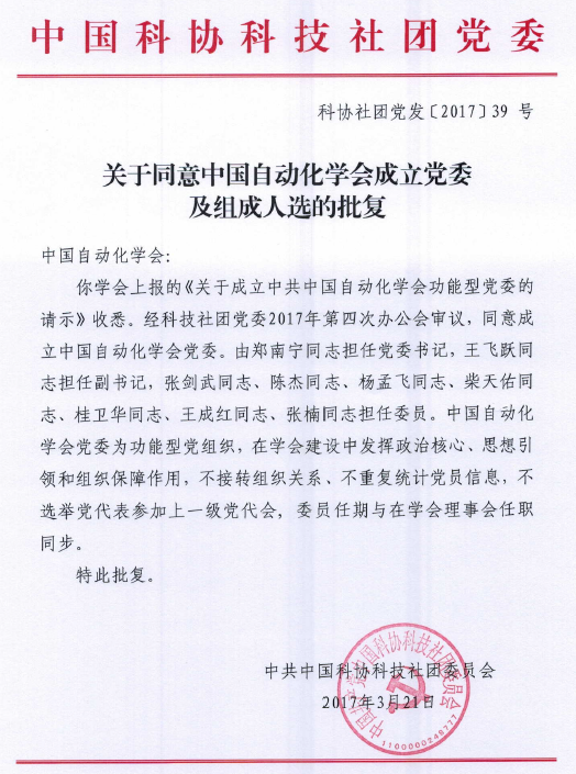 近日,中国科协同意并批复了新利娱乐网站关于成立中共新利娱乐网站功能型党委的请示。