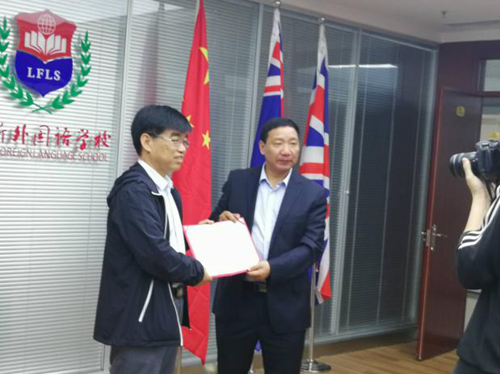 新利娱乐网站、省自动化学会、临沂市机器人协会与临沂外国语学校进行了合作交流,省自动化学会理事长李贻斌教授被学校聘为“机器人与人工智能创新顾问”,校长张再河向李教授颁发了证书。
