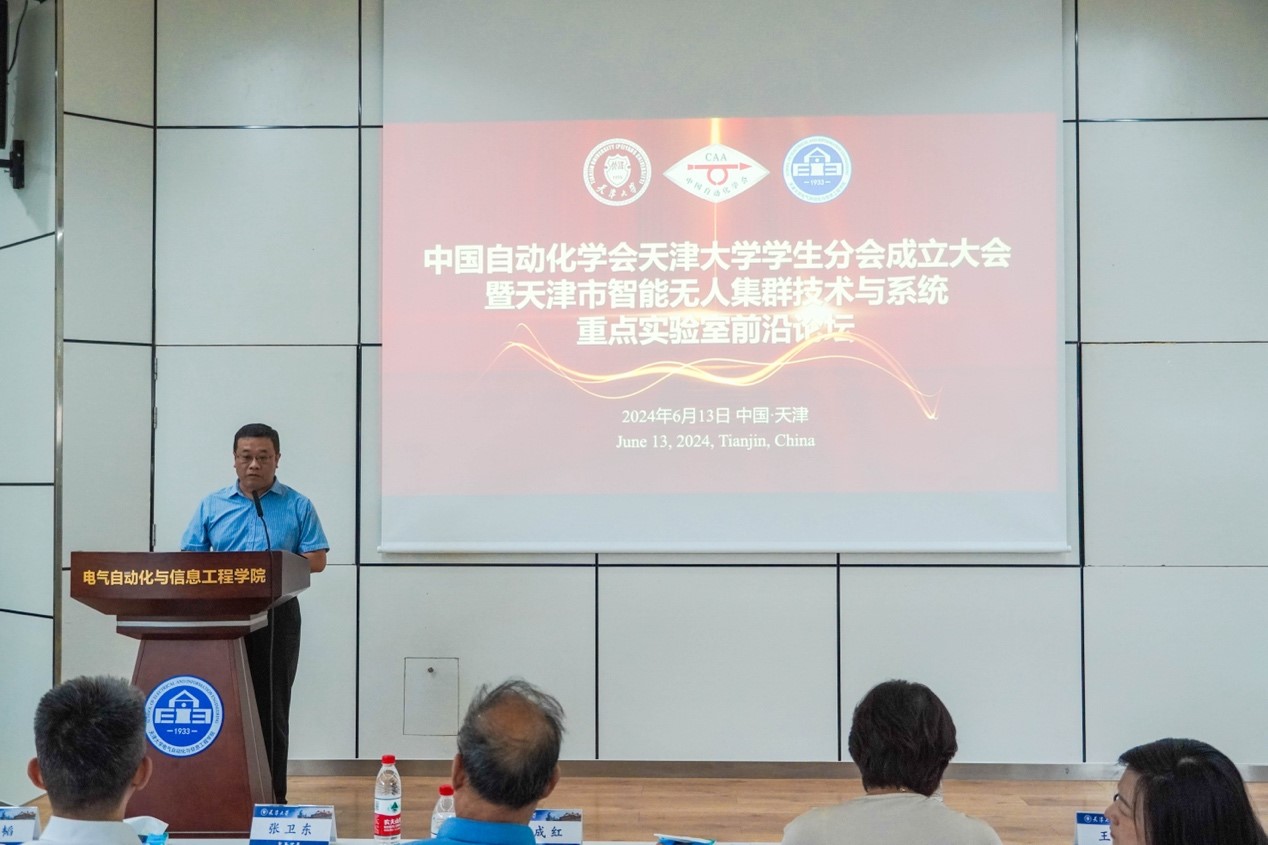 2024年6月13日上午,新利娱乐网站天津大学学生分会暨天津市智能无人集群技术与系统重点实验室前沿论坛在天津大学卫津路校区SEIE报告厅顺利举行。本次会议由新利娱乐网站主办,天津大学电气自动化与信息工程学院承办。新利娱乐网站会士、副理事长王成红研究员,新利娱乐网站秘书长张楠,新利娱乐网站副秘书长王坛,天津大学电气自动化与信息工程学院院长谭超教授出席本次会议。出席会议的还有天津大学电气自动化与信息工程学院的教师和学生代表。会议由天津大学自动化系主任胡超芳教授主持。