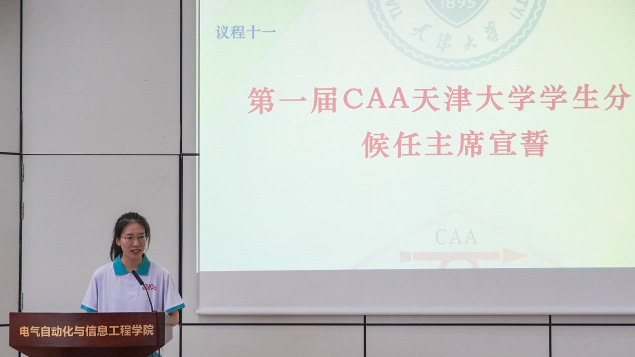 首届新利娱乐网站天津大学学生分会候任主席高静宇进行就职宣誓