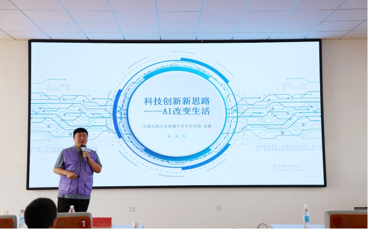 金鑫开展了以“科技创新新思路——AI改变生活”为主题的讲座,巧妙融合互动体验与实例解析,带领孩子们沉浸式感受人工智能技术在日常生活中的广泛应用。他以人大附中丰台学校学生开展的科技创新活动为参照,引导现场学生从身边生活实际出发,发现学习、生活中的具体问题,并尝试结合 AI 技术构思解决路径。为让 “科技改变生活” 的理念更易理解,他还结合 AI 老年人防跌倒系统设计、基于 AI 视觉的青少年情绪监测、AI 手语翻译等贴近生活的实例,直观展现 AI 技术在民生服务、健康关怀等领域的应用价值,让学生们深刻体会到科技与生活的紧密联系。