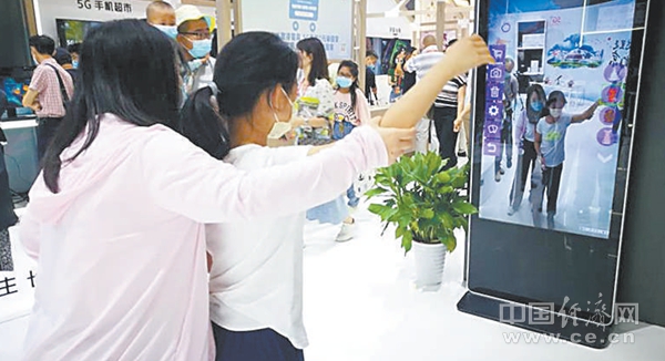 在2020服贸会5G通信服务专题展区,观众正体验“AR试衣镜”。 经济日报-中国经济网记者 崔国强摄